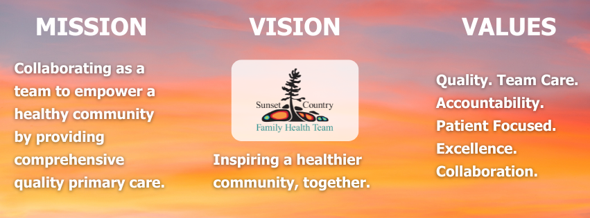 The Sunset Country Family Health Team’s intention in using of this style of logo is to show respect for our commitment to all people in our community in providing and inspiring a healthier community together.